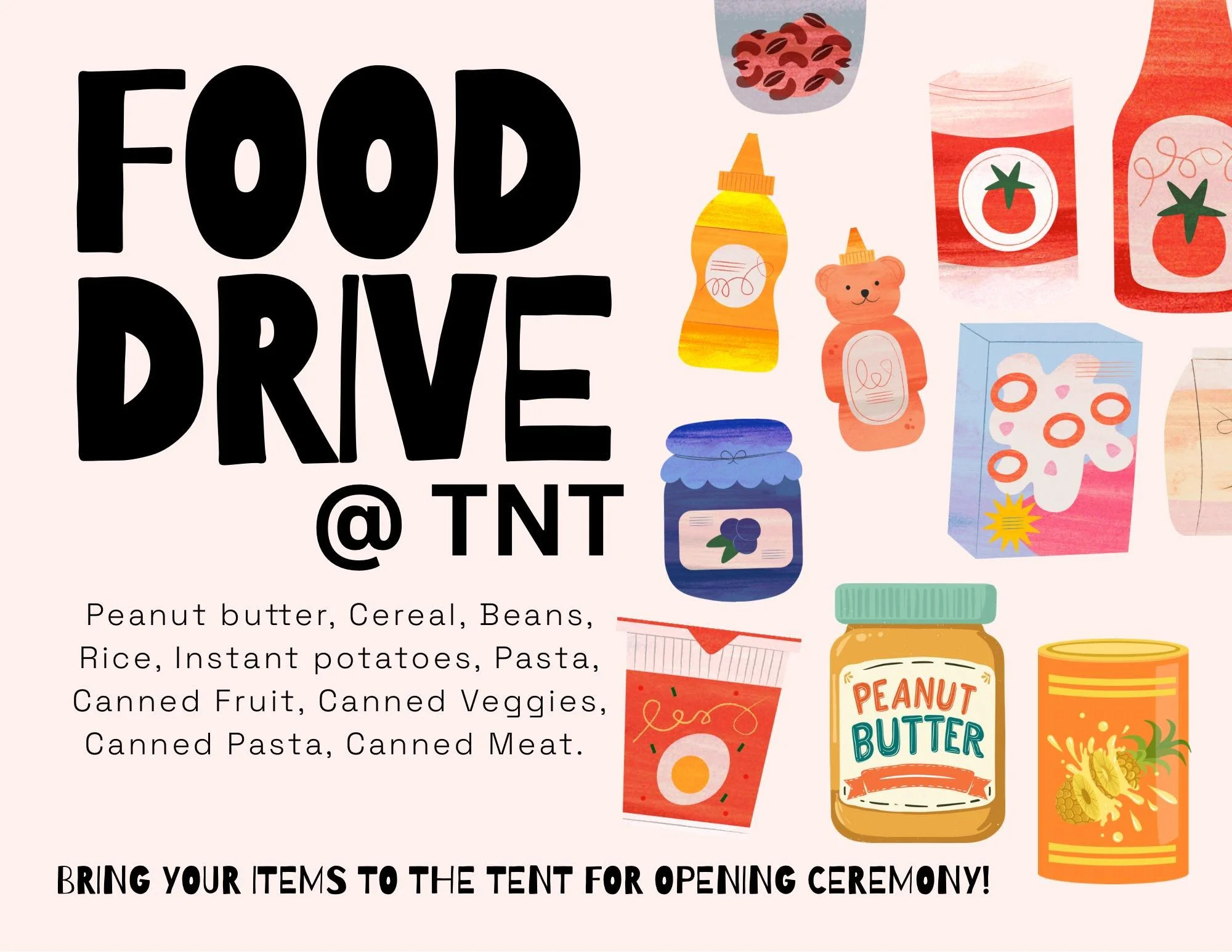This year’s TNT @ TNU theme is "Made for More." We will be collecting the non-perishable items listed on the attached flyer to distribute to the local community in Nashville to help students in the area.
